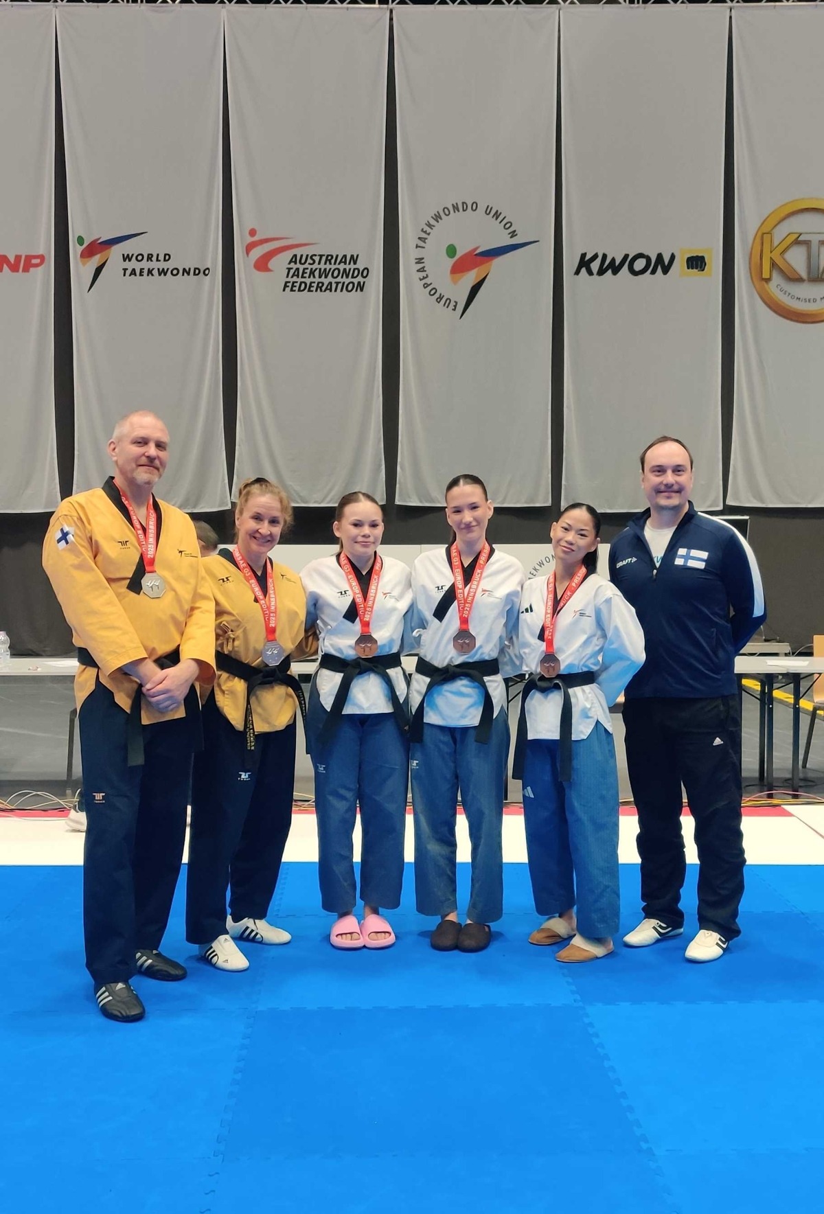 Sunnuntaina käytiin puolestaan pari- ja ryhmäsarjat sekä freestyle. Tänään oli nuorempien vuoro aloittaa, Sofian ja Ainon kilpaillessa Team Female U30 -sarjassa Wondo Espoon Mia Knutssonin kanssa. Ensimmäisenä vastustajana oli jälleen Saksa. Suomen ryhmä jäi ensimmäisessä poomsessa hieman pisteissä jälkeen, ja vaikka toisesta he saivat Saksaa paremmat pisteet, ero ei kaventunut tarpeeksi ja voitto jäi saamatta, tuloksena kuitenkin pronssimitali.